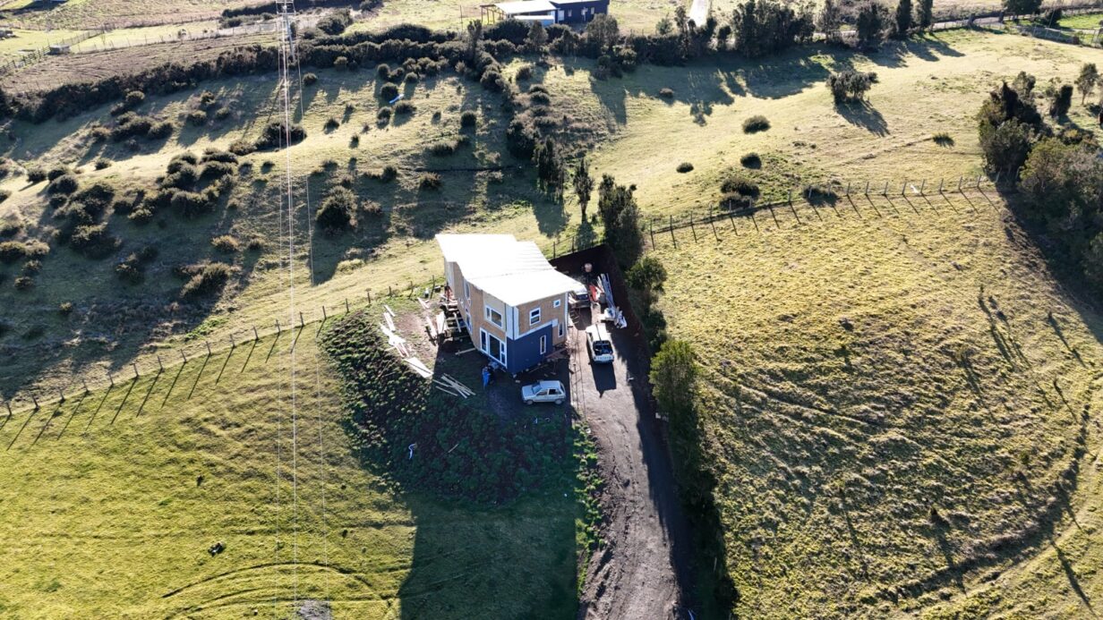 Actualmente en construcción con un 53% de avance. Cuenta con 2 niveles, cocina integrada y calefacción, estructurada en pino ipv y aislación termoacústica y sellos térmicos (sistema nórdico), envolvente de humedad para evitar puentes térmicos, cuenta con una separación al piso de 55cms que la aíslan de las bajas temperaturas en estas latitudes.